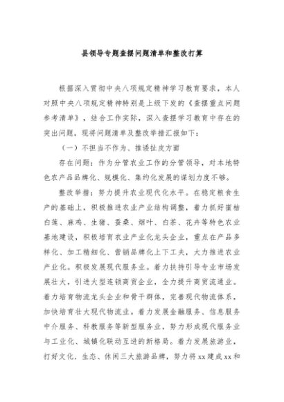 / 县领导专题查摆问题清单和整改打算