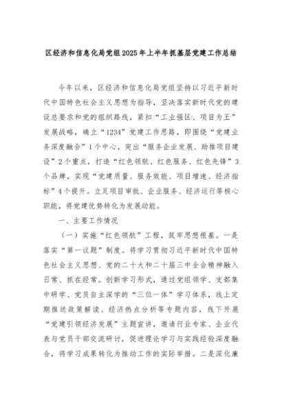 / 区经济和信息化局党组2025年上半年抓基层党建工作总结