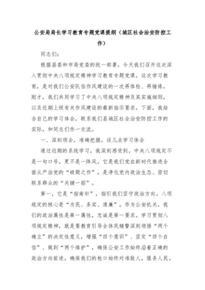 / 公安局局长学习教育专题党课提纲(城区社会治安防控工作)