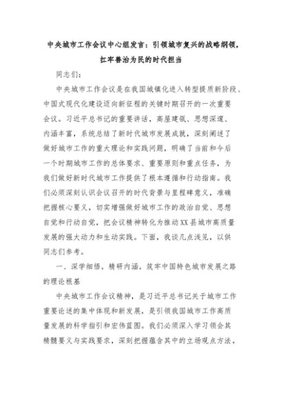 中央城市工作会议中心组发言:引领城市复兴的战略纲领,扛牢善治为民的时代担当