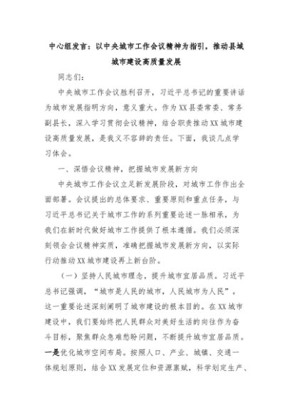/ 中心组发言:以中央城市工作会议精神为指引,推动县域城市建设高质量发展