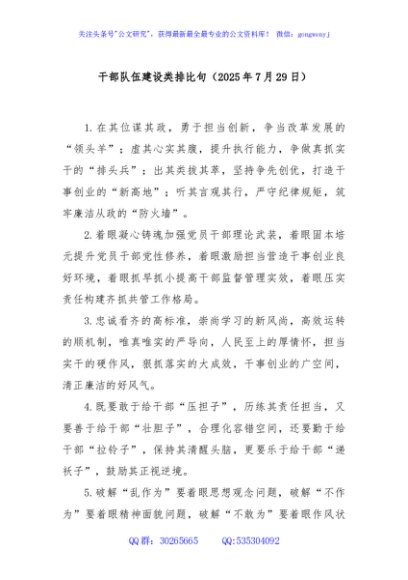 / 干部队伍建设类排比句(2025年7月29日)