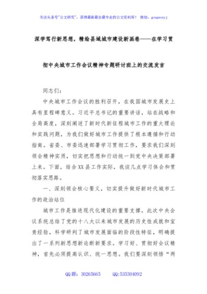 / 深学笃行新思想,精绘县域城市建设新画卷——在学习贯彻中央城市工作会议精神专题研讨班上的交流发言