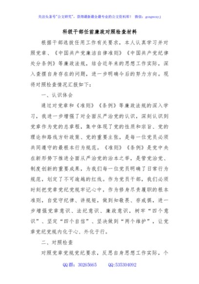 / 科级干部任前廉政对照检查材料