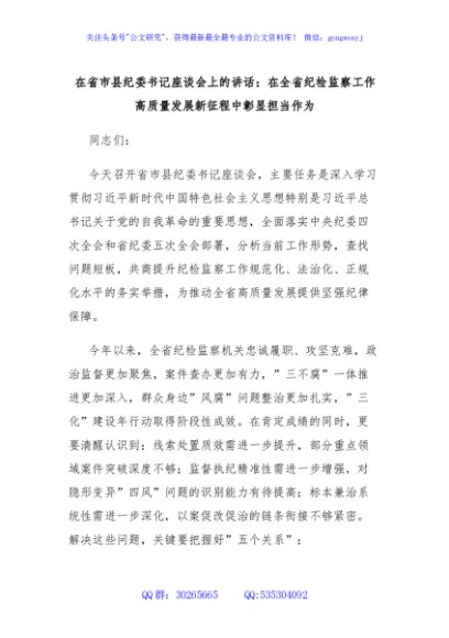 / 在省市县纪委书记座谈会上的讲话:在全省纪检监察工作高质量发展新征程中彰显担当作为