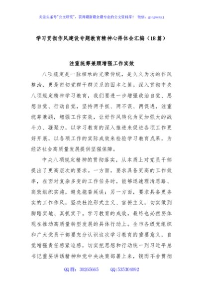 / (18篇)学习贯彻作风建设专题教育精神心得体会汇编