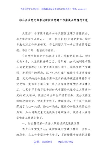 / 非公企业党支部书记在园区党建工作座谈会的情况汇报