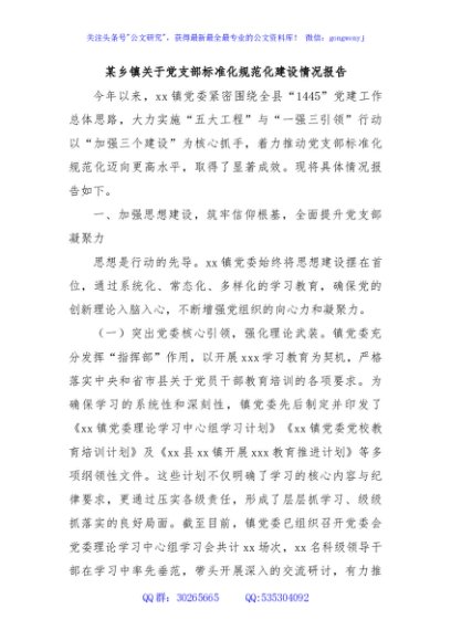 / 某乡镇关于党支部标准化规范化建设情况报告