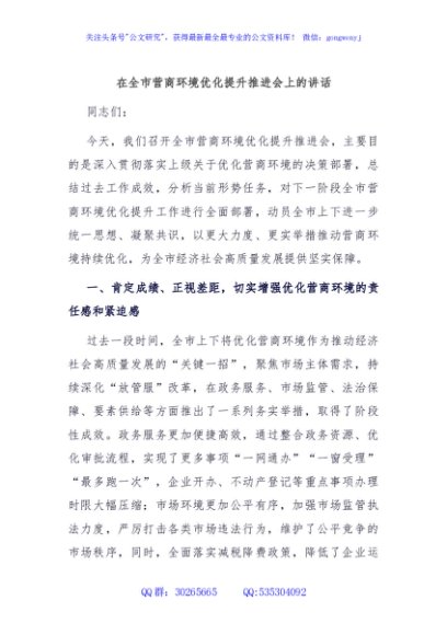 / 在全市营商环境优化提升推进会上的讲话