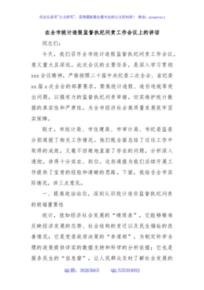 / 在全市统计造假监督执纪问责工作会议上的讲话