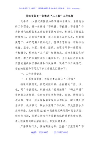 / 县纪委监委一体推进“三不腐”工作汇报