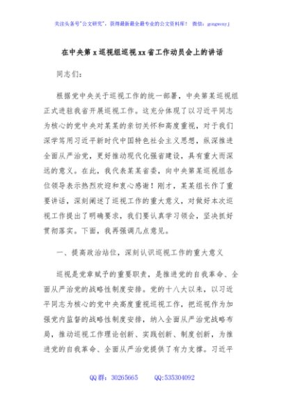 / 在中央第x巡视组巡视xx省工作动员会上的讲话