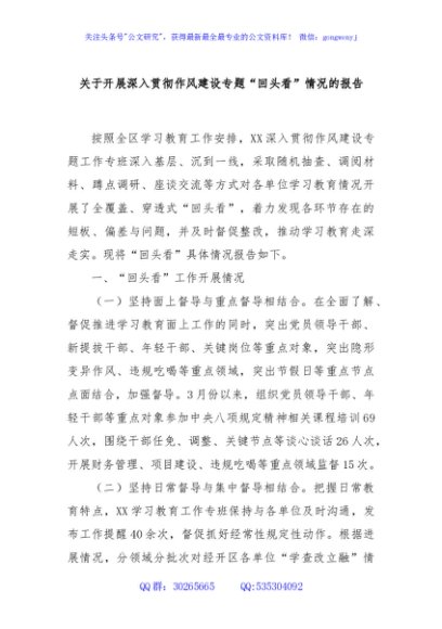 / 关于开展深入贯彻作风建设专题“回头看”情况的报告