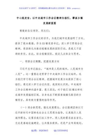 / 中心组发言:以中央城市工作会议精神为指引,擘画乡镇发展新蓝图