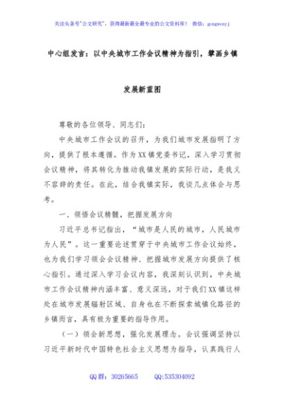 / 中心组发言:以中央城市工作会议精神为指引,擘画乡镇发展新蓝图
