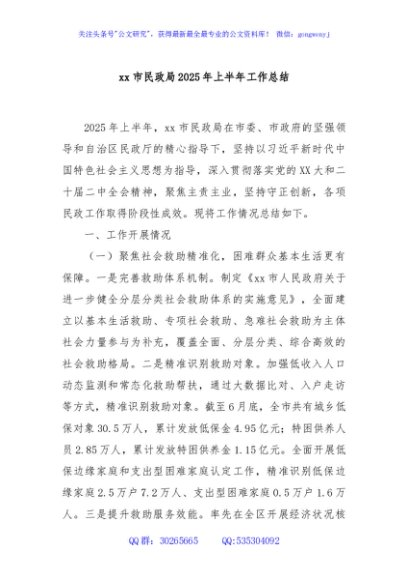 / xx市民政局2025年上半年工作总结