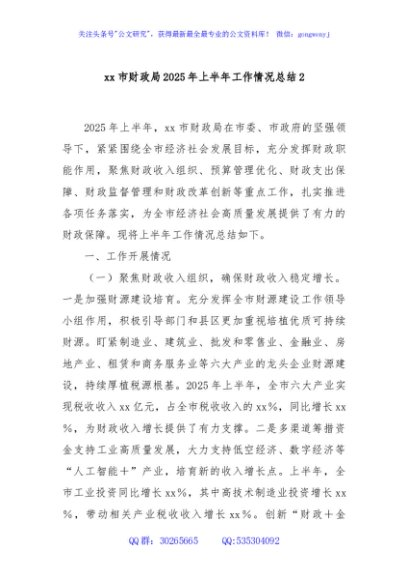 / xx市财政局2025年上半年工作情况总结2