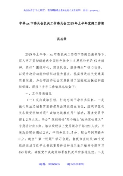 / 中共xx市委员会机关工作委员会2025年上半年党建工作情况总结