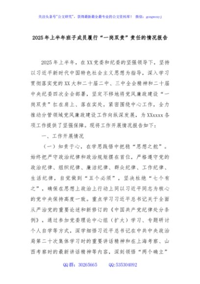 / 2025年上半年班子成员履行“一岗双责”责任的情况报告