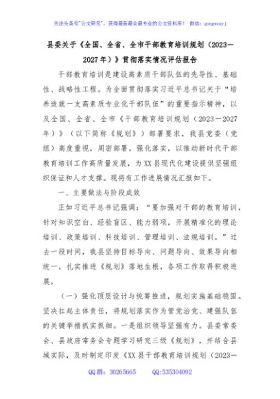/ 县委关于《全国、全省、全市干部教育培训规划(2023-2027年)》贯彻落实情况评估报告