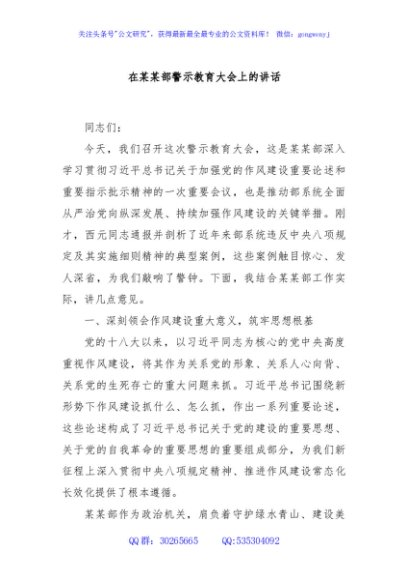 / 在某某部警示教育大会上的讲话