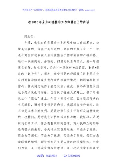 / 在2025年全乡环境整治工作部署会上的讲话