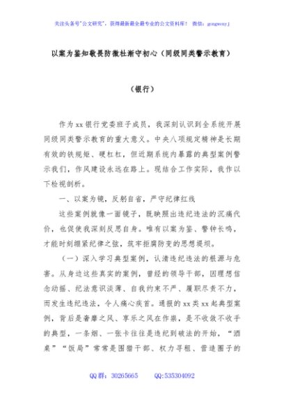 / 以案为鉴知敬畏防微杜渐守初心(同级同类警示教育)(银行)