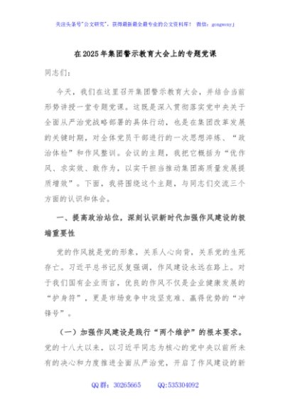 在2025年集团党风廉政建设宣传教育月专题党课上的讲稿