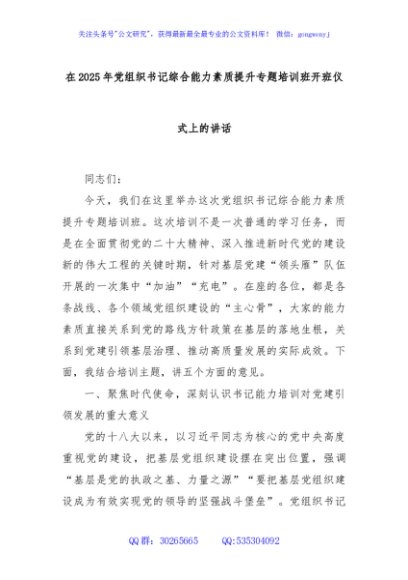 / 在2025年党组织书记综合能力素质提升专题培训班开班仪式上的讲话
