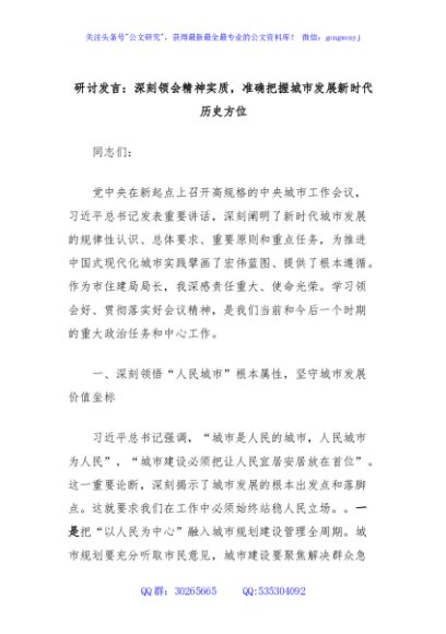 研讨发言:深刻领会精神实质,准确把握城市发展新时代历史方位(中央城市工作会议精神)
