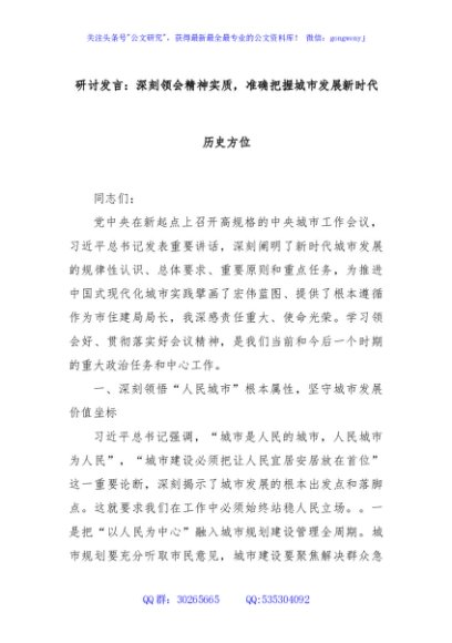 研讨发言:深刻领会精神实质,准确把握城市发展新时代历史方位(中央城市工作会议精神)