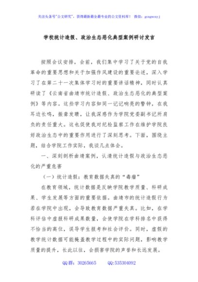 / 学校统计造假、政治生态恶化典型案例研讨发言