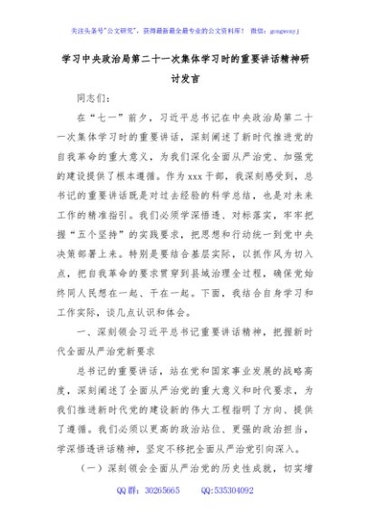/ 学习中央政治局第二十一次集体学习时的重要讲话精神研讨发言