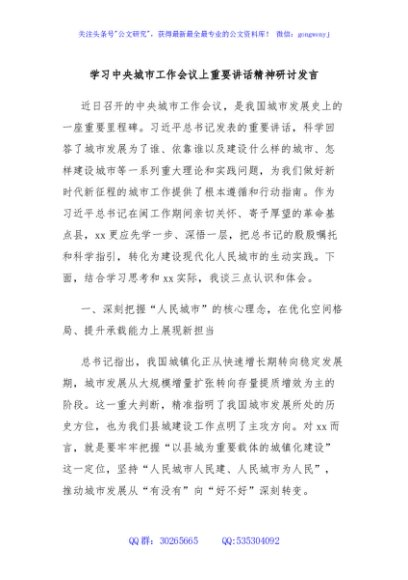 / 学习中央城市工作会议上重要讲话精神研讨发言