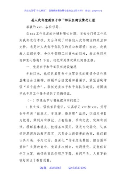 / 县人武部党委班子和干部队伍建设情况汇报