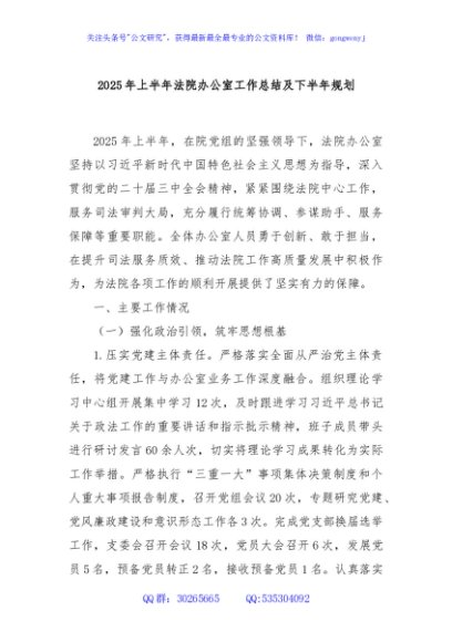 / 2025年上半年法院办公室工作总结及下半年规划