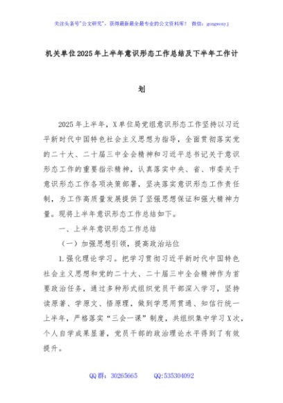 / 机关单位2025年上半年意识形态工作总结及下半年工作计划