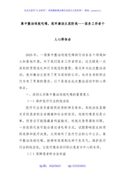 集中整治违规吃喝,筑牢廉洁从医防线——医务工作者个人心得体会