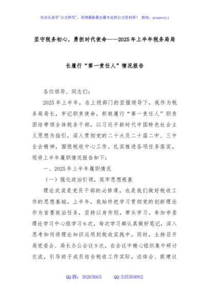 / 坚守税务初心,勇担时代使命——2025年上半年税务局局长履行“第一责任人”情况报告