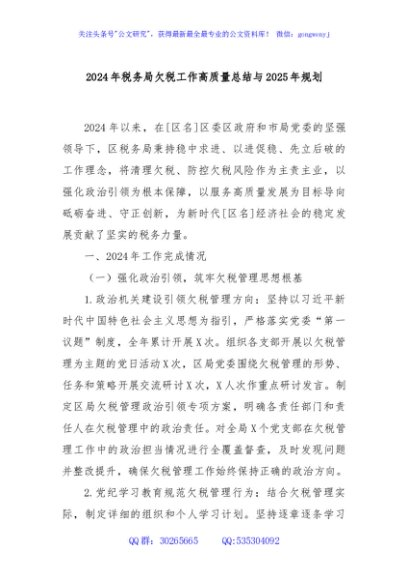 / 2024年税务局欠税工作高质量总结与2025年规划