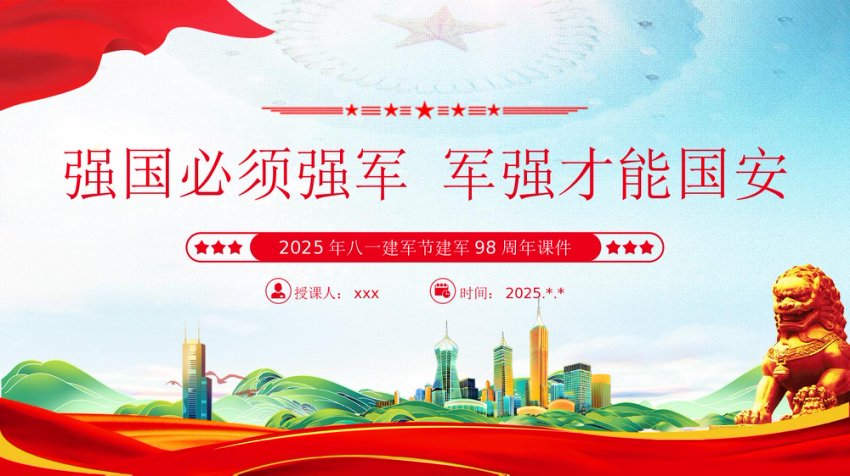 / PPT:2025年八一建军节建军98周年党课课件:强国必须强军军强才能国安ppt