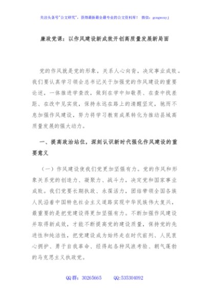 / 廉政党课:以作风建设新成效开创高质量发展新局面