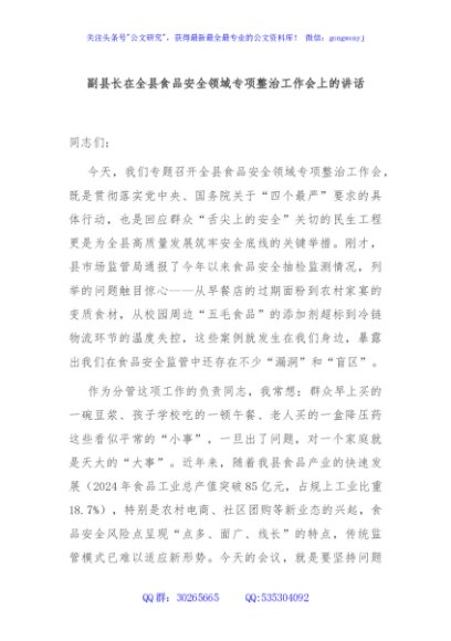 / 副县长在全县食品安全领域专项整治工作会上的讲话