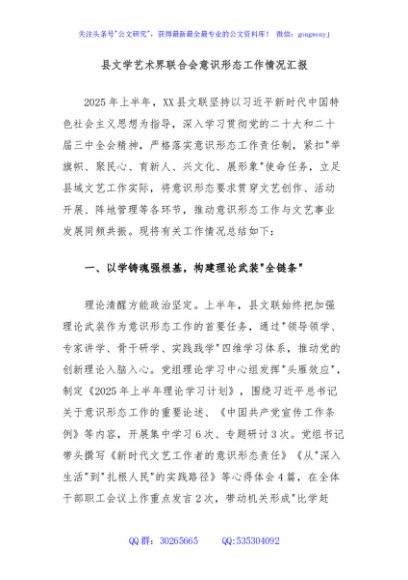 / 县文学艺术界联合会意识形态工作情况汇报