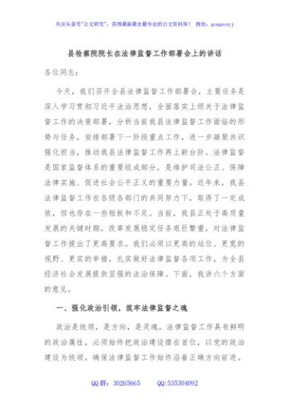 / 县检察院院长在法律监督工作部署会上的讲话