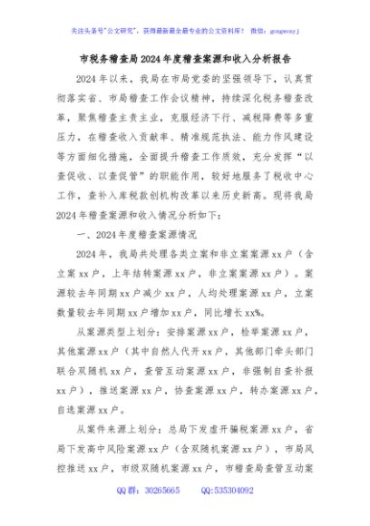 / 市税务稽查局2024年度稽查案源和收入分析报告