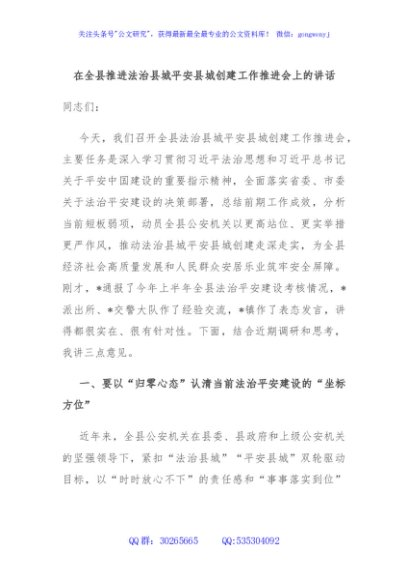 / 在全县推进法治县城平安县城创建工作推进会上的讲话
