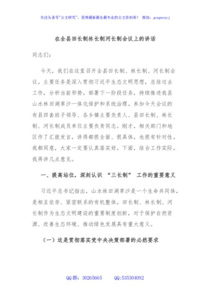/ 在全县田长制林长制河长制会议上的讲话