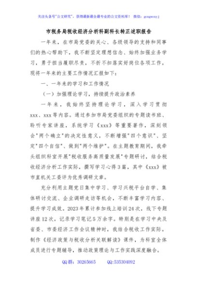 / 市税务局税收经济分析科副科长转正述职报告