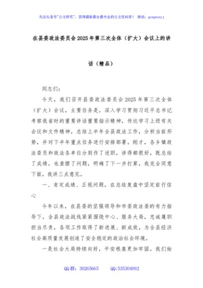 / 在县委政法委员会2025年第三次全体(扩大)会议上的讲话(精品)